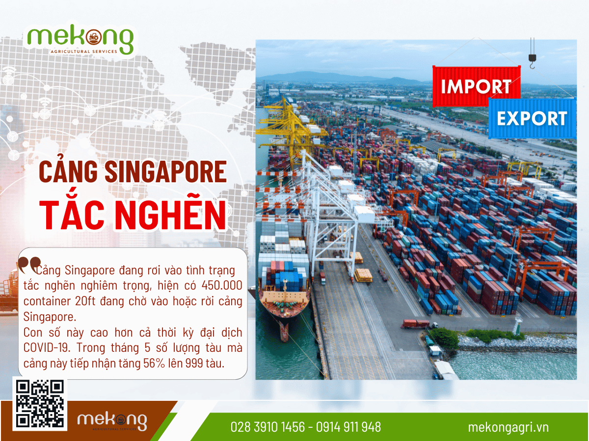 Cảng Singapore đang rơi vào tình trạng tắc nghẽn nghiêm trọng hơn cả giai đoạn cao điểm trong đại dịch COVID-19. Hiện có 450.000 container 20ft đang chờ vào hoặc rời cảng Singapore. Con số này cao hơn cả thời kỳ đại dịch COVID-19. Trong tháng 5 số lượng tàu mà cảng này tiếp nhận tăng 56% lên 999 tàu. Nguyên nhân được cho là do tác động dây chuyền từ cuộc khủng hoảng hàng hải ở khu vực Biển Đỏ thời gian qua, buộc các hãng tàu container phải thay đổi lịch trình.