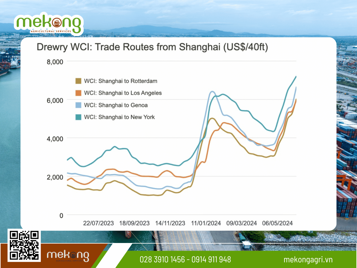 Maersk cũng dự báo cước vận chuyển sẽ tăng lên do tình trạng tắc nghẽn cảng. Hãng nâng dự báo lợi nhuận trước thuế, lãi vay và khấu hao (EBITDA) trong năm 2024 lên mức 7-9 tỷ đô la Mỹ, tăng 3 tỷ đô la so với dự báo trước đây.