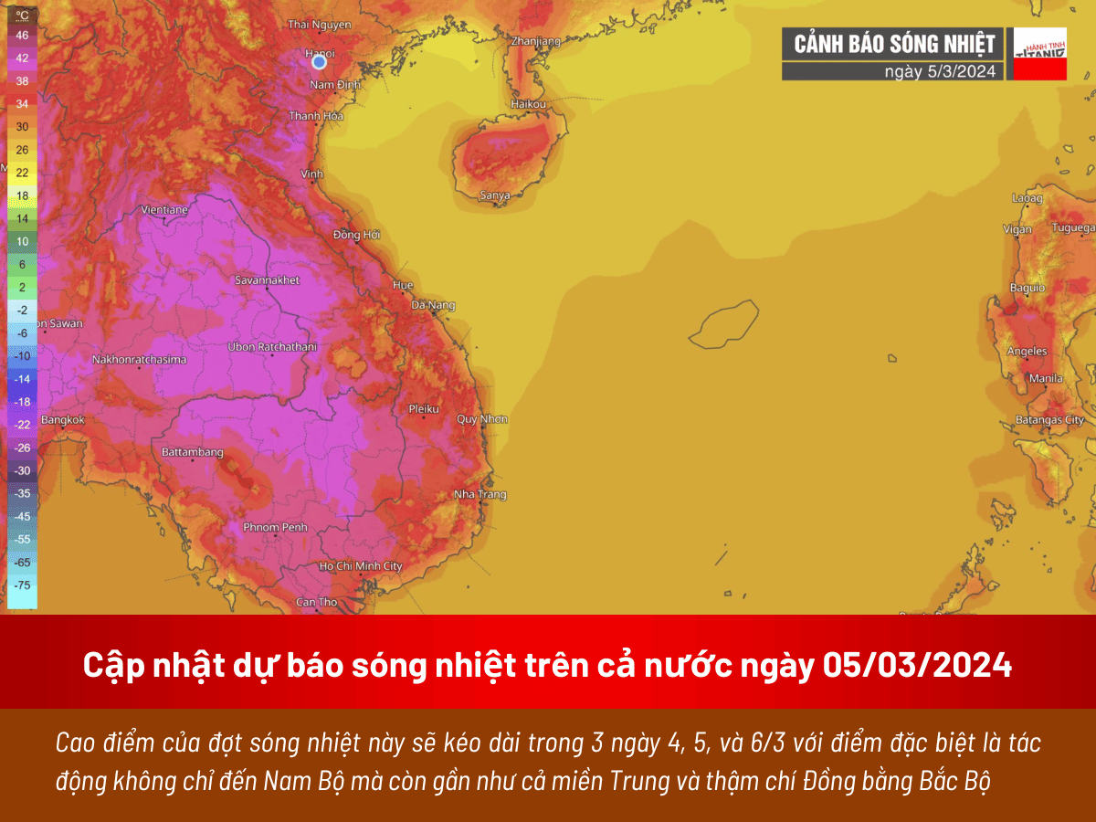 Cao điểm của đợt sóng nhiệt này sẽ kéo dài trong 3 ngày 4, 5, và 6/3 với điểm đặc biệt là tác động không chỉ đến Nam Bộ mà còn gần như cả miền Trung và thậm chí Đồng bằng Bắc Bộ.