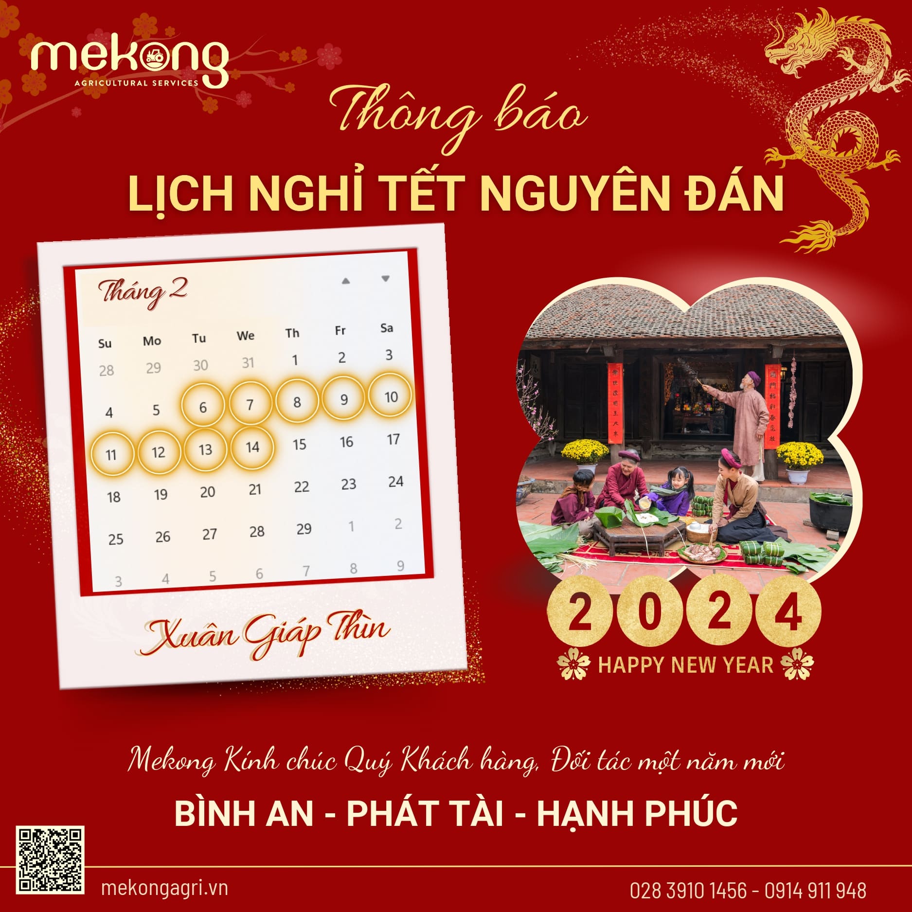 Để thuận tiện cho kế hoạch mua hàng của Quý Đối tác và Khách hàng, Mekong xin trân trọng thông báo lịch nghỉ Tết Nguyên Đán năm 2024 như sau: