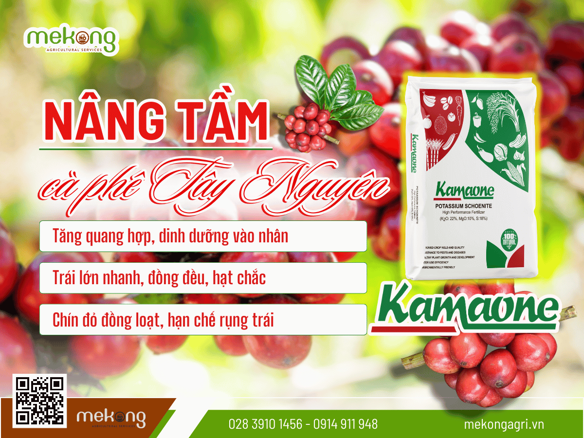 Giai đoạn nước rút để hạt cà phê đạt độ chắc và chín đều, việc bổ sung dinh dưỡng đúng cách là rất quan trọng. Phân bón Kamaone mang đến giải pháp vượt trội nhờ ba dưỡng chất kali, magie và lưu huỳnh.