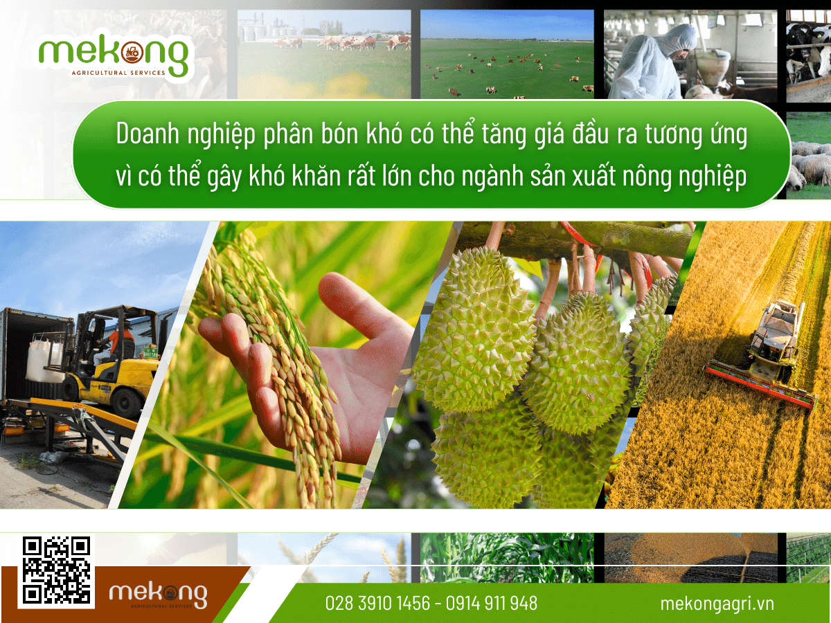 Mekong - một đơn vị hoạt động trong lĩnh vực nông nghiệp, chuyên nhập khẩu và phân phối đa dạng các nguyên liệu sản xuất phân bón, phân bón (vô cơ, hữu cơ, sinh học, vi sinh) và cung cấp các giải pháp dinh dưỡng toàn diện cho cây trồng. Là doanh nghiệp nhập khẩu phân bón, trước tình hình thực tế ngày một khó khăn, doanh nghiệp một mặt phải kiểm soát chi phí đầu vào đang tăng rất cao, một mặt phải kiểm soát giá bán mới mong đồng hành được với người nông dân, cũng như góp phần đảm bảo an ninh lương thực trong nước.